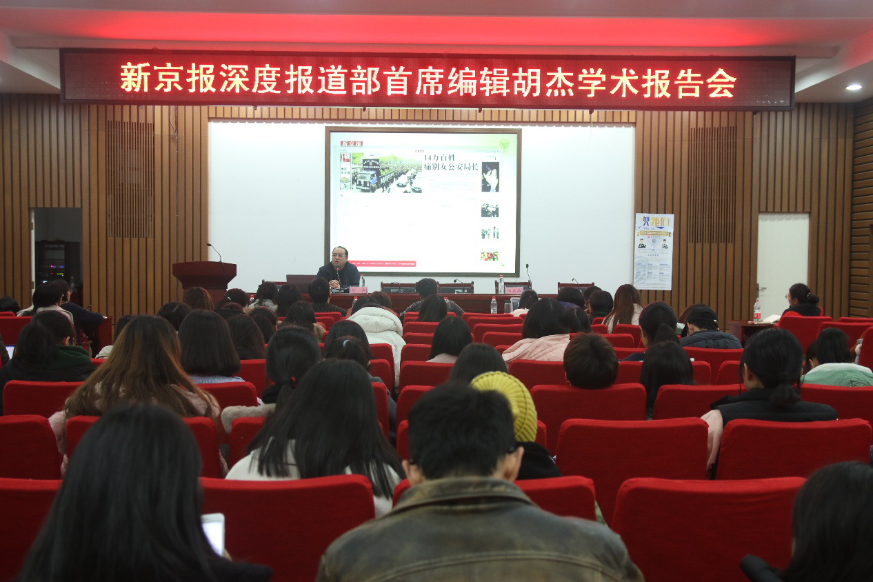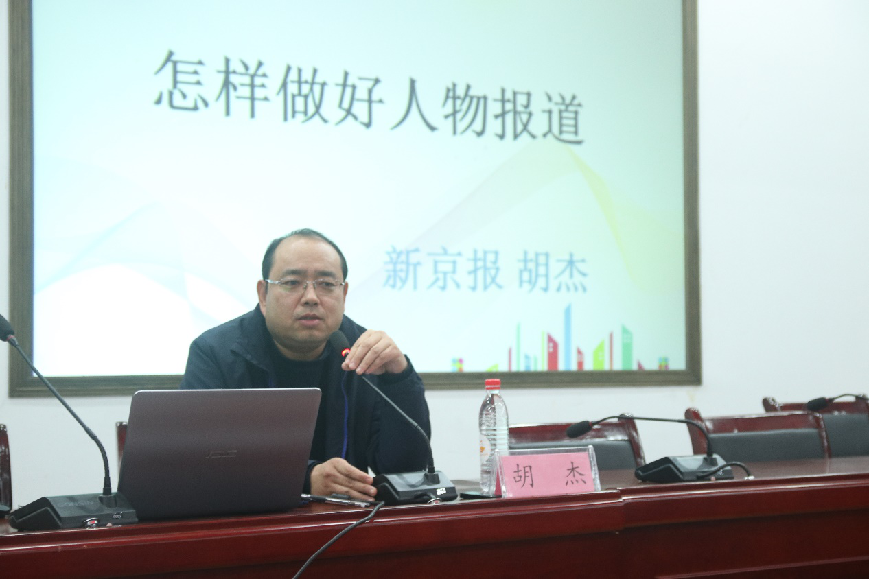 12月23日下午三点,新京报深度报道部首席编辑胡杰在williamhill英国威廉希尔教学北楼217报告厅以“怎样做好人物报道”进行学术报告。凤凰网执行总编辑曹晓波等资深职业媒体人,williamhill英国威廉希尔新闻传播与影视艺术学院副经理向志强出席讲座。新闻传播与影视艺术公司党委委员阳美燕担任主持。