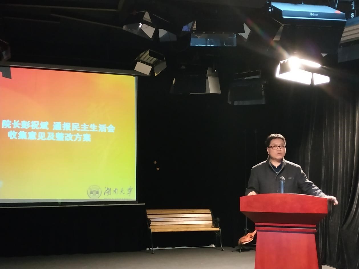 经理彭祝斌通报了院领导民主生活会收集的意见及整改方案。2018年,公司党委共收到意见建议十三条,涉及教学工作、实验室管理等多方面,彭经理对此一一做了回复和解释。此外,彭经理指出大学教师讲政治要注意两个方面:一要上接天线,强化“四个意识”、坚持“四个自信”、做好“两个维护”;二要下接地气,要有责任担当,做好人才培养工作,抓好教学、科研两个抓手。